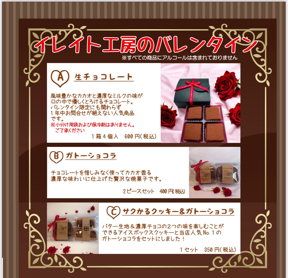 イレイト工房よりバレンタインチョコレート予約開始のお知らせです💓