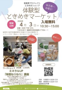 ANDTHESOIL出店 2026 4/03 キッチンカー 未分類 2026年4月3日 本日はときめきマーケット出店しました 完売致しました ありがとうございました キッチンカー 未分類 3月8日AND THE SOIL(高砂)キッチンカー 関連記事 3月8日AND THE SOIL(高砂)キッチンカー 2月のキッチンカー出店情報 バレンタインチョコレート予約開始のお知らせ 2日間ありがとうございました!2月8日(日) グローバルアリーナ出店しました!2月7日(土) 2月7日(土)グローバルアリーナにてキッチンカー出店! 2月13日(金)バレンタイン企画としてチョコ&焼き菓子販売します!アンペレーナ百道にて、お待ちしております! ◯/◯(◯) ◯◯市◯◯会場 出店のお知らせ3